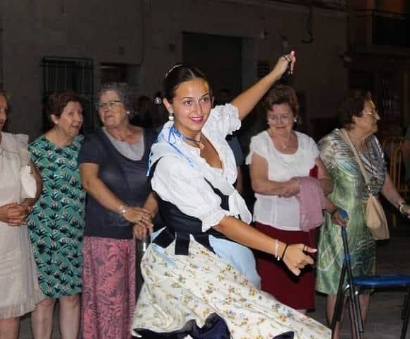 Primero formamos parte del grupo infantil, junto con un gran número de niñas y muy pocos niños. Lo del baile, por lo visto, nos correspondía casi en exclusiva a las mujeres y, desafortunadamente, muy poco de esto ha cambiado. Allí comenzamos a aprender la base de casi cualquier baile regional valenciano: un-dos-tres, un-dos-tres, un-dos-tres… o, dicho en términos musicales, ritmo ternario o de tres por cuatro. Los brazos, siempre en alto, tenían que acompañar a esas piernas que iban de derecha a izquierda acompasadas, mecidas por un movimiento que te hacía sentir poderosa. Después de unos años y unas cuantas actuaciones en las que probamos los nervios del escenario, pero también las mieles de los aplausos, pasamos al grupo de las mayores, y eso, para cualquiera de las que estábamos allí, era dar un gran salto.