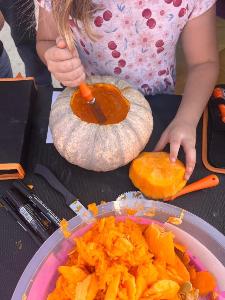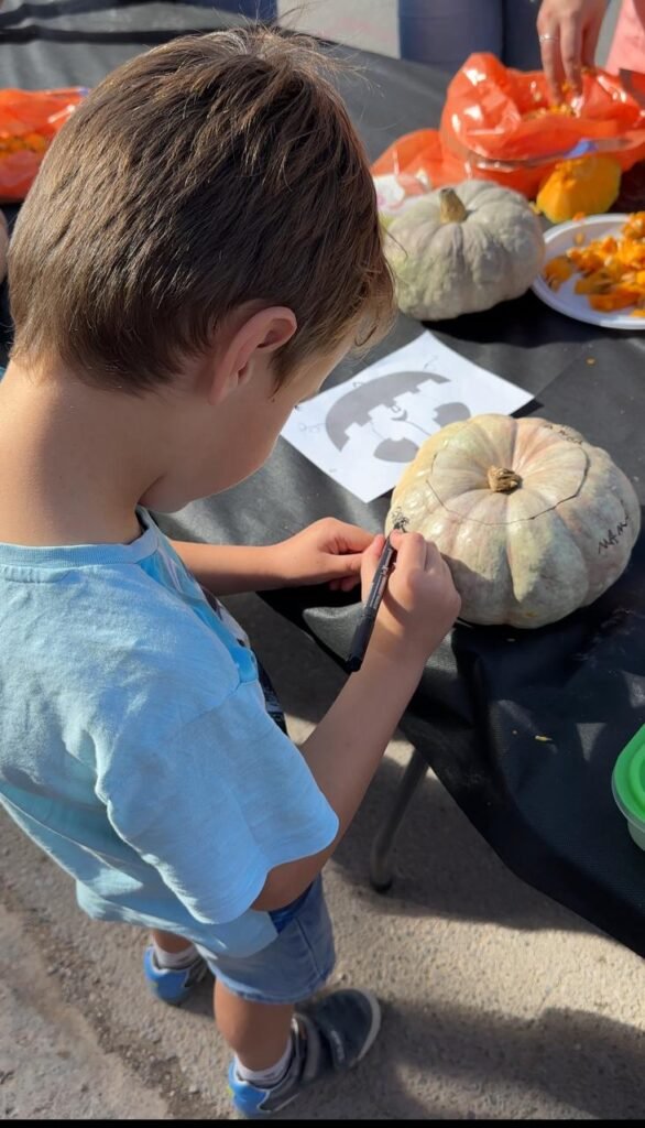 Després de l’esmorzar que s’ha celebrat al pati del col·legi amb la participació dels pares, els xiquets i xiquetes han buidat, dissenyat i dibuixat amb divertits colors les carabasses que estan ja preparades per a la desfilada de la setmana vinent.