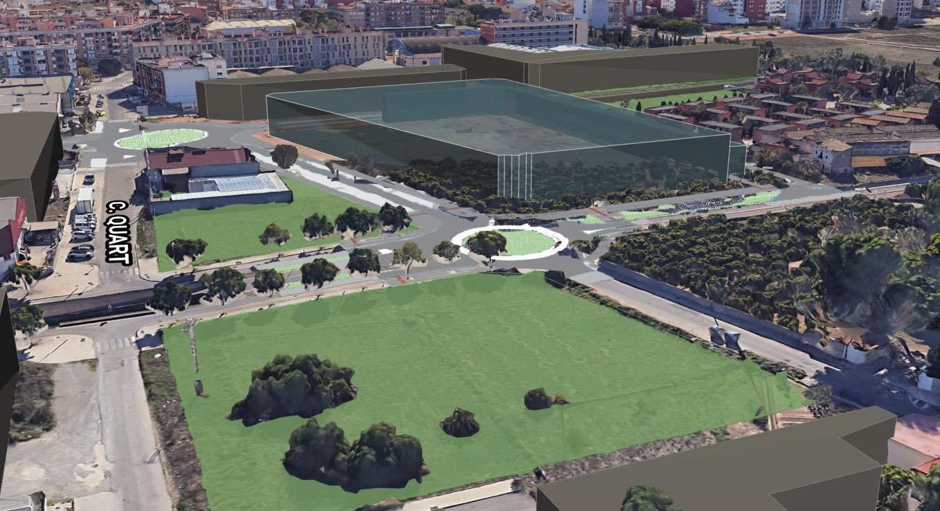 En la información se acompañan dos imágenes con la simulación de la urbanización de la zona y la reserva de espacio destinada para el futuro centro comercial. En la imagen superior a partir de la parte recayente a las calles 128 y Sevilla se observa la calle Quart hasta su confluencia con las calles Murcia y Mestre Miguel Buendia. Se observa también a la izquierda la rotonda de nueva creación en el cruce entre las calles Sevilla, Quart y Olocau.