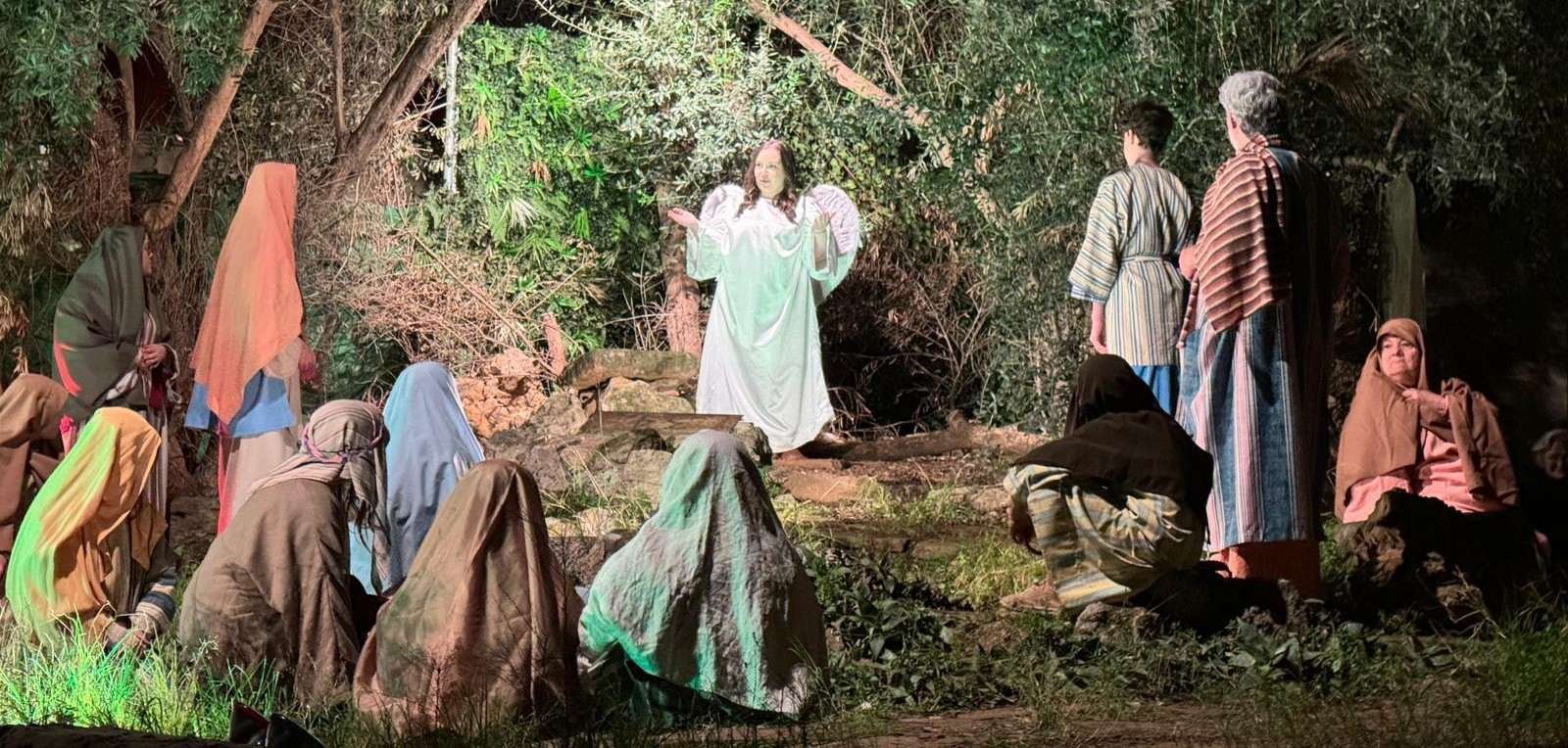 Fueron decenas de personas, familias al completo, las que asistieron a presenciar el belén viviente en el cual participan los actores aficionados de la asociación cultural que el mes de diciembre cambian los papeles que interpretan cada año en primavera durante las celebraciones del Misterio de la Pasión en la Semana Santa.