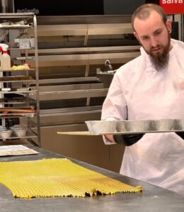 Joan Serra nació y se crió en el carrer major de Moncada y estudió en el colegió San Jaime Apóstol. Cuando acabó la ESO cursó estudios de comercio y marketing, pero según confiesa a Moncada Digital desde Barcelona donde trabajaba actualmente, «siempre me he había atraído el mundo de la panadería y bollería y decidí realizar un grado de panadería».