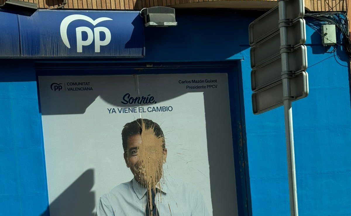 El PP de Moncada ha denunciado en redes sociales un nuevo ataque a su sede en la víspera del 29-O. En el día de ayer los ventanales de la sede del carrer Badia en la que aparece el vinilo con la fotografía de Carlos Mazón apareció manchada de barro en lo que denuncian un nuevo acto vandálico.