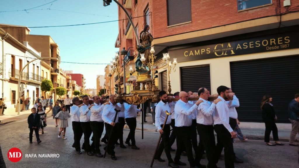 Acompañando la imagen de la Virgen Inmaculada iban las clavariesas de hace 25 y 50 años. La imagen ha sido llevada por los anderos de la Virgen de los Desamparados de Moncada, mientras que la imagen de Cristo Resucitado era portada por los anderos de Santa Bàrbara.