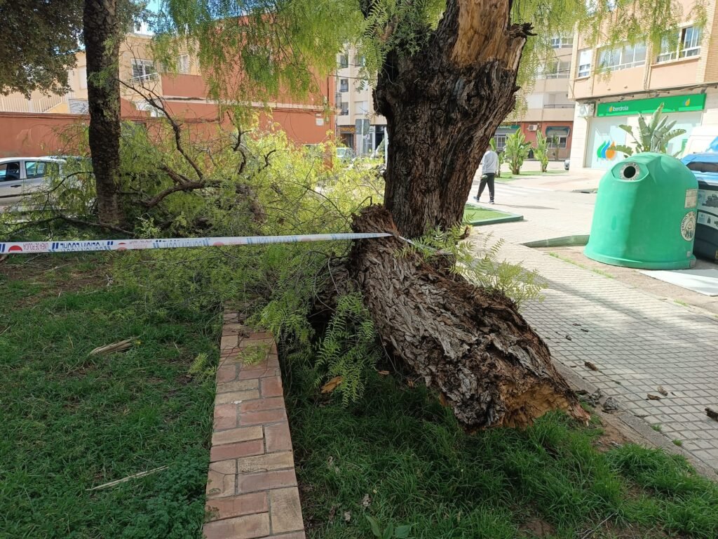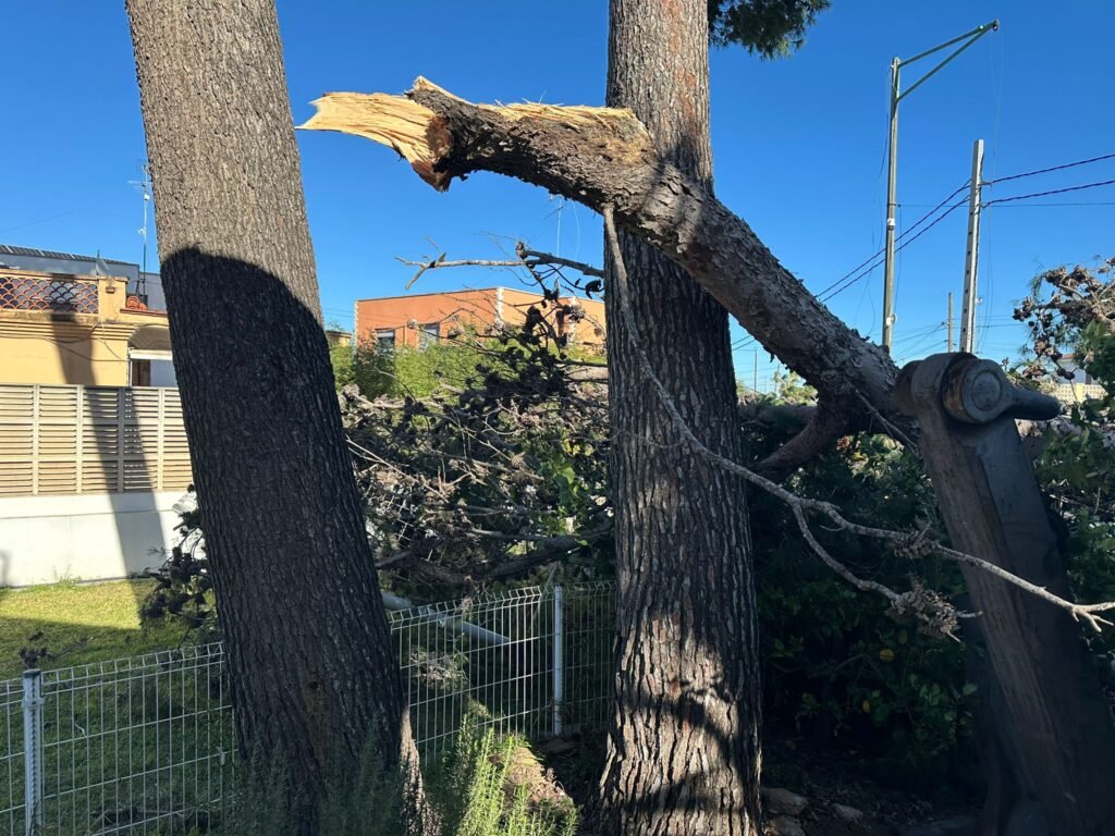 A ello se ha unido la caída de un árbol de grandes dimensiones que estaba en una propiedad privada de la calle Barcelona que además de invadir la calle ha causado daños a vehículos estacionados en la vía pública. Dada la envergadura del ejemplar para la retirada del mismo ha acudido una brigada de bomberos.