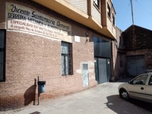 El taller, darrere, posseïa una esplanada que servia per emmagatzemar els cotxes vells – en una espècie de cementeri d’automòbils o desballestament –, on els xiquets i xiquetes es colaven pel laberint de vehicles existents per jugar, sense ser vistos. Els camps de davant , al costat del Forn del Roig (al carrer de la Baixà), eren tots d’horta i estaven treballats pels llauradors, vorejant el Campet. També, vora via estava la fusteria Beltrán que va sofrir un gran incendi i ja no va poder recuperar la seua activitat.