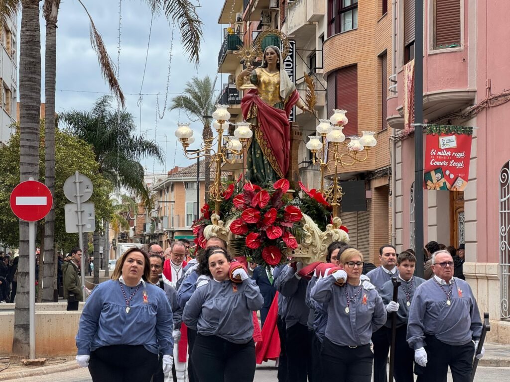 La vigília i la foguera en honor a la patrona de Moncada, el trasllat de la imatge i la relíquia des de la parròquia de Sant Jaume a l’ermita i el tradicional mercat ambulant que ompli els carrers de la pujada a l’ermita han sigut la tònica general en unes jornades amb gran afluència de públic i on no han faltat les barberetes de Moncada per a endolcir un dia que marca l’inici del compte arrere per a Nadal.