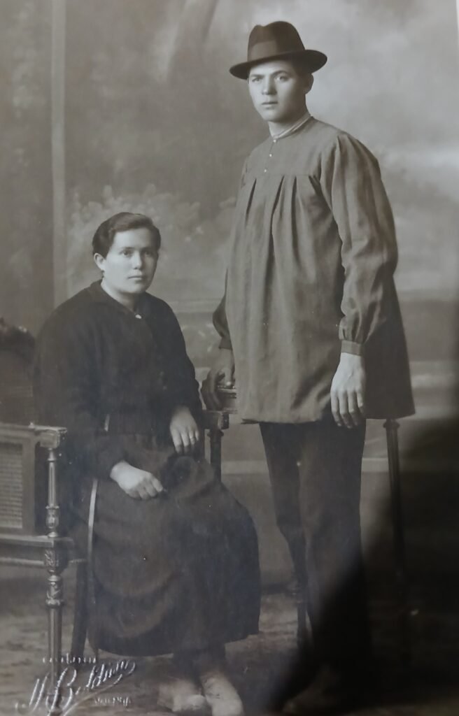 Fineta amb la campana de Sant Jaume per restaurar i José Lluesma, el Cabello, el dia de la seua boda. (El Pesador).