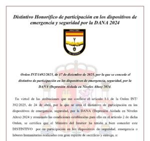 Distintivo Honorífico por la DANA | MD