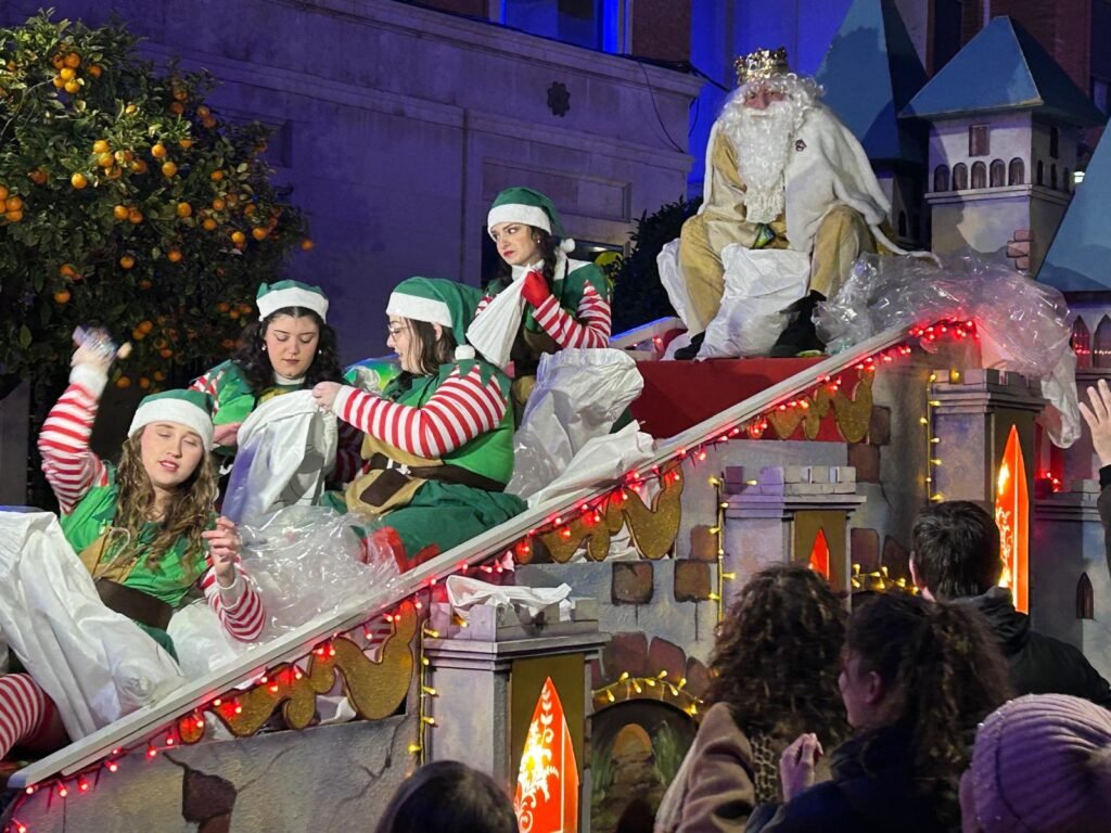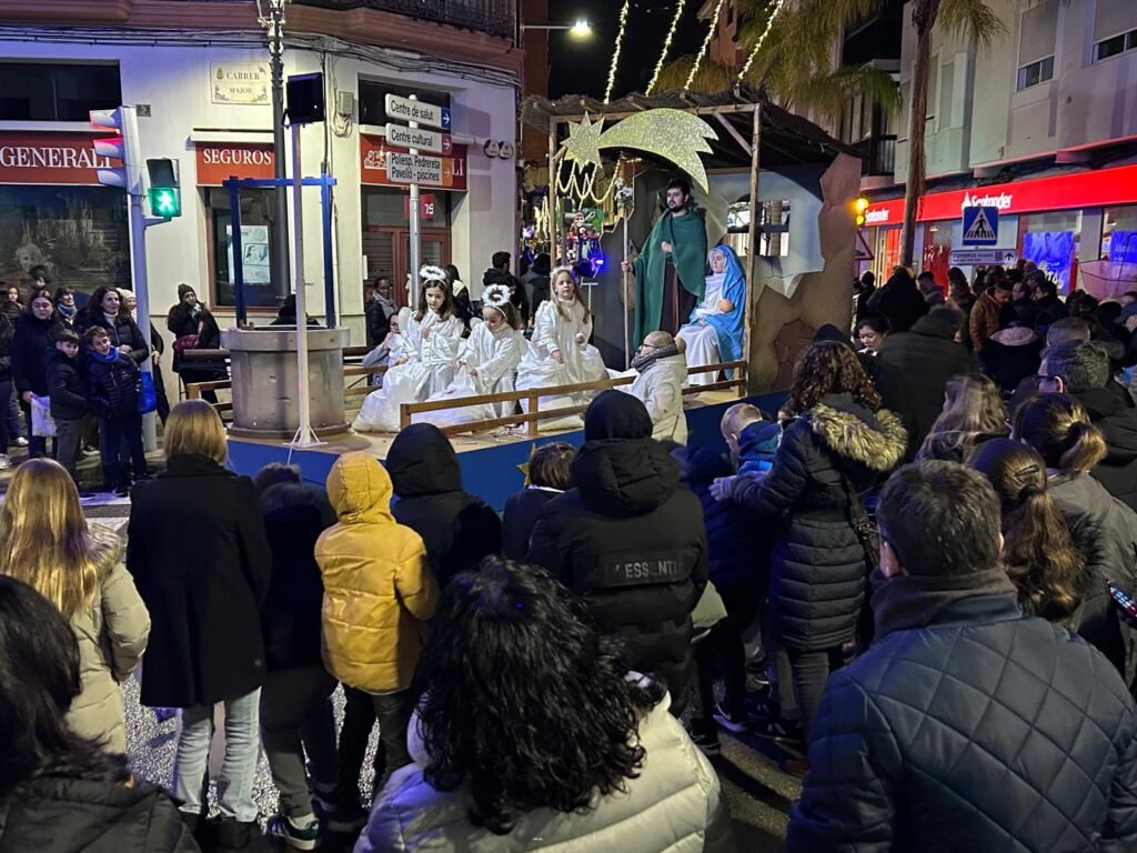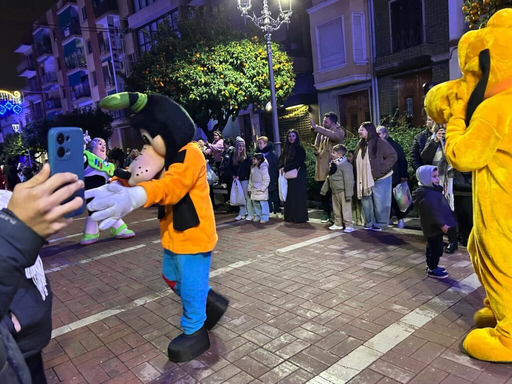 El desfile de carrozas estaba encabezado por los bailes de animación infantil a cargo de Coppelius Dance School a la que ha seguido una comitiva de camiones con miembros de asociaciones locales y carrozas desde donde los Reyes y sus séquitos han repartido miles de regalos y golosinas a lo largo de todo el recorrido. En la comitiva no han faltado personajes como Buzz Lightyear, Winnie the Pooh, Goofy, Pluto y Minnie Mouse así como la participación de músicos de la Unió y del Centrre Artístic Musical así como la Asociación Tamborileros de Hellín Moncada.