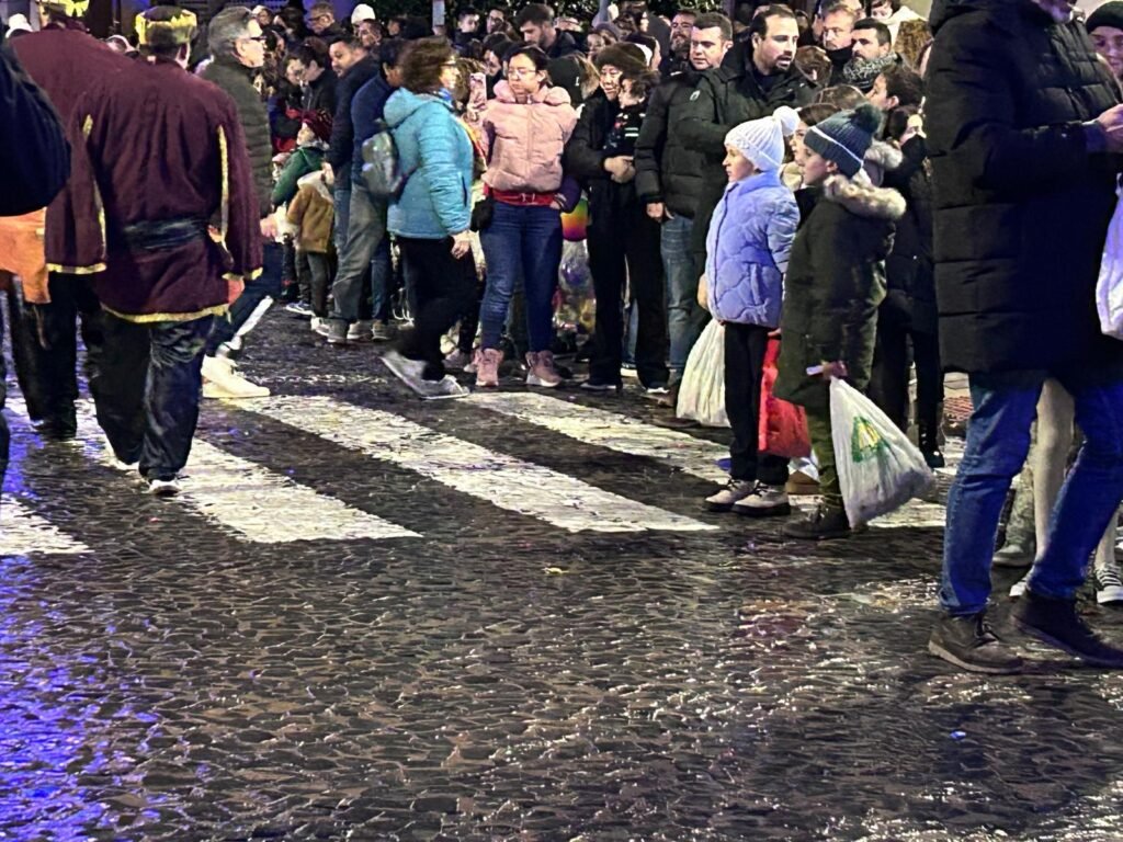 La organización ha cuidado todos los detalles de la cabalgata que se ha desarrollado con total normalidad, aunque los diez minutos de espera unido a la ansiedad por ver a los Reyes Magos en el balcón de la biblioteca se han hecho largos a causa del intenso frio.