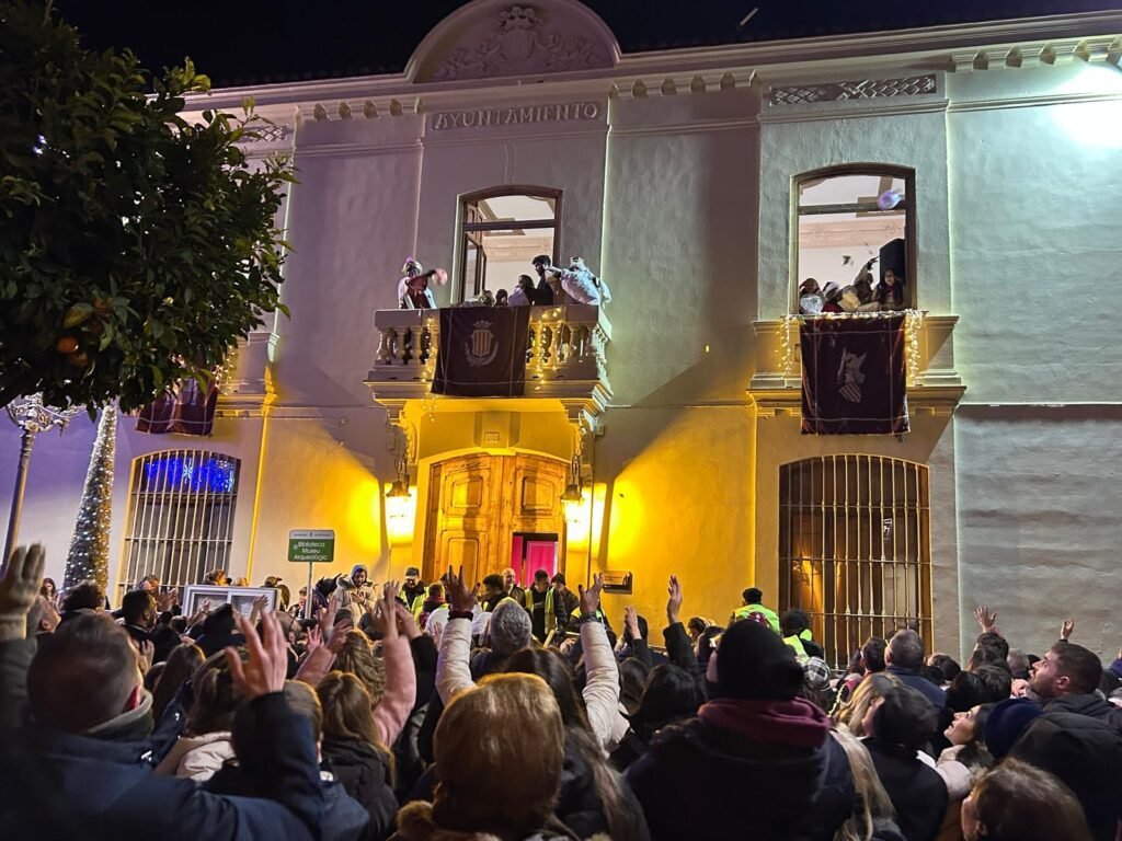 La alcaldesa ha dado la bienvenida a los Reyes desde el balcón y les ha hecho entrega de las llaves de la ciudad de Moncada para que entren en las casas de todas las niñas y niños de Moncada en una noche mágica.