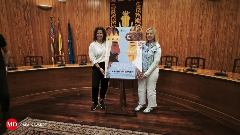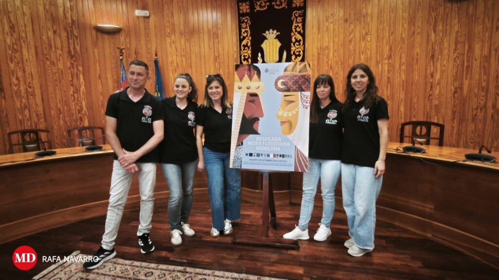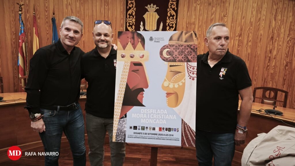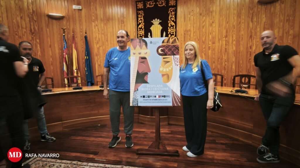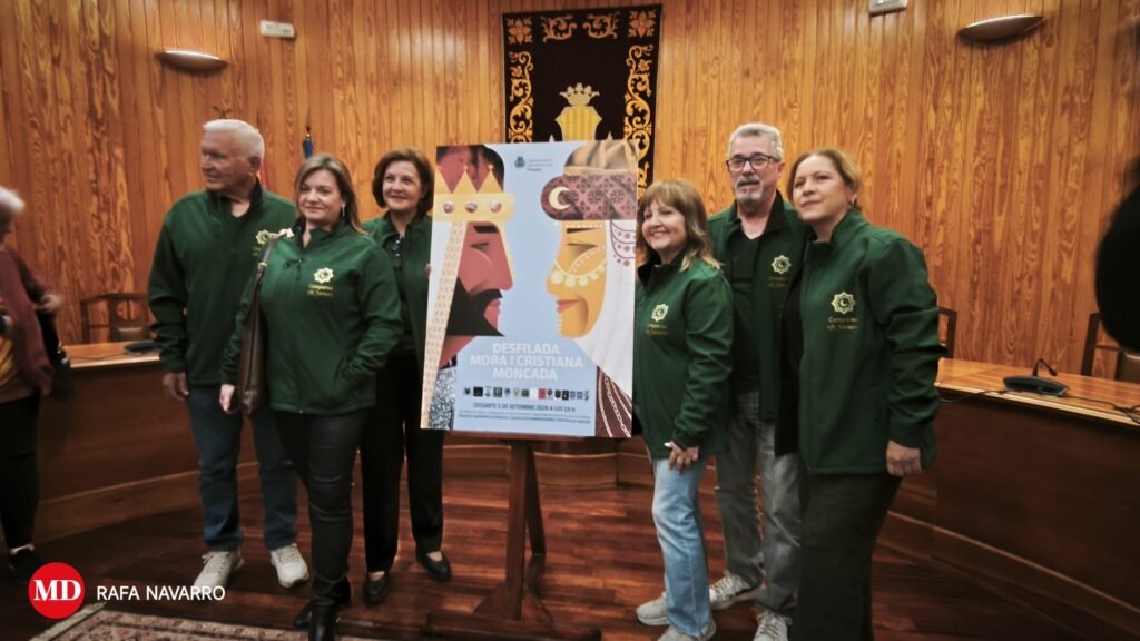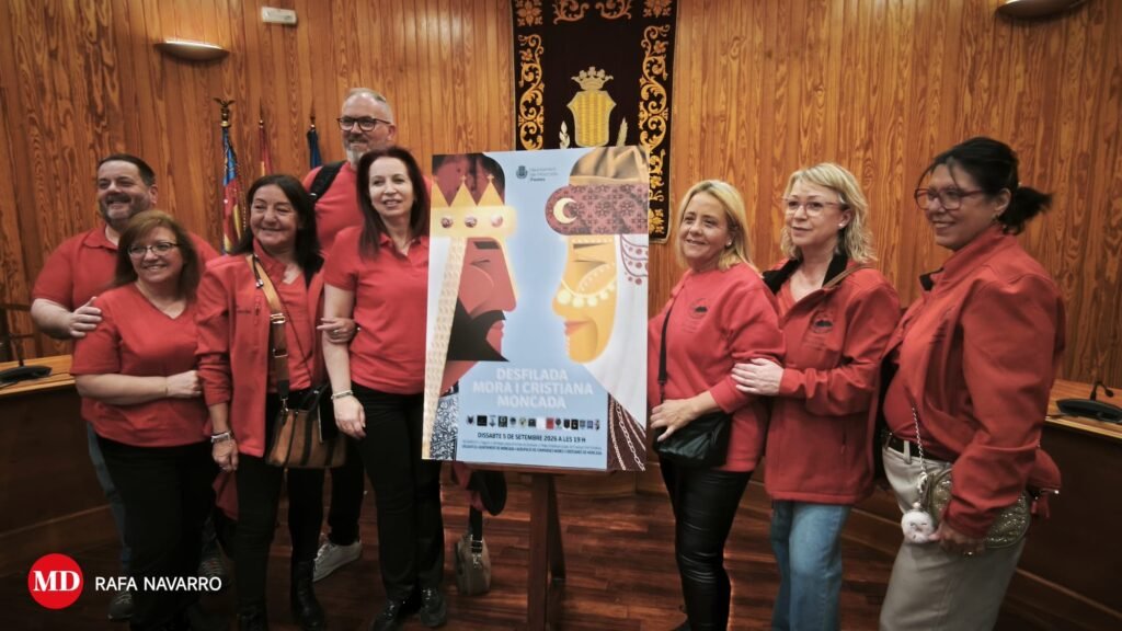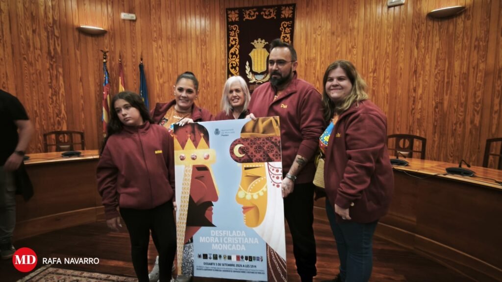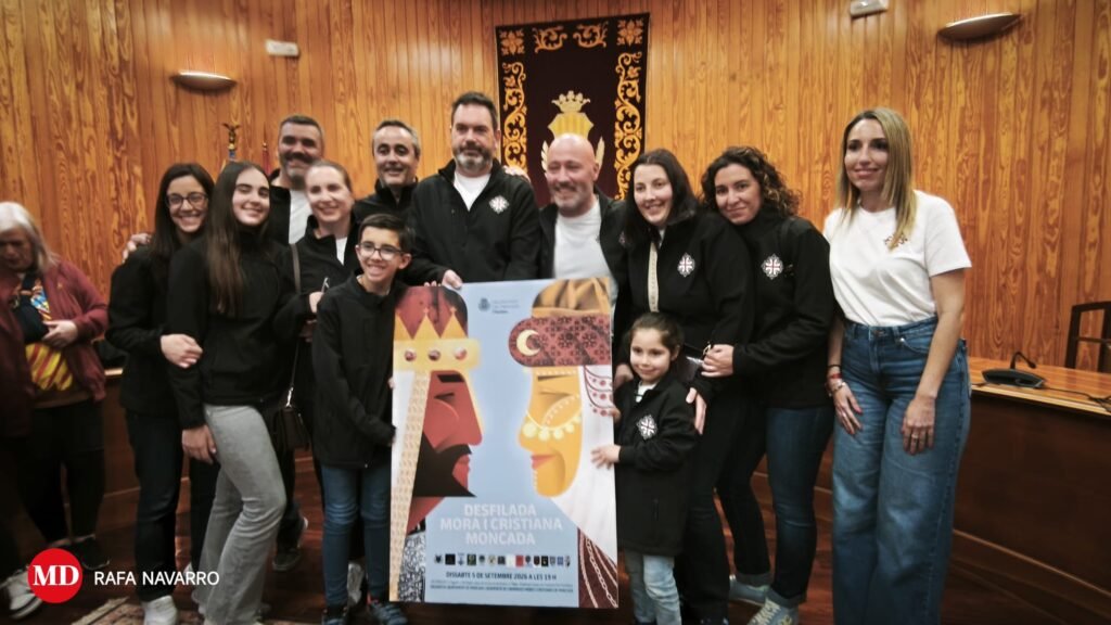 La Fiesta de Moros y Cristianos de Moncada ya tiene cartel. El salón de plenos ha sido el escenario de la presentación oficial del cartel anunciador uno de los eventos más esperados de las Fiestas Patronales. El acto ha contado con la presencia de la alcaldesa, Amparo Orts; el concejal de fiestas, Martín Pérez y la presidenta de la Federación de Comparsas de Moncada, Mónica Meliá, así como una amplia representación de las 15 comparsas, ocho moras y siete cristianas que conforman la agrupación.