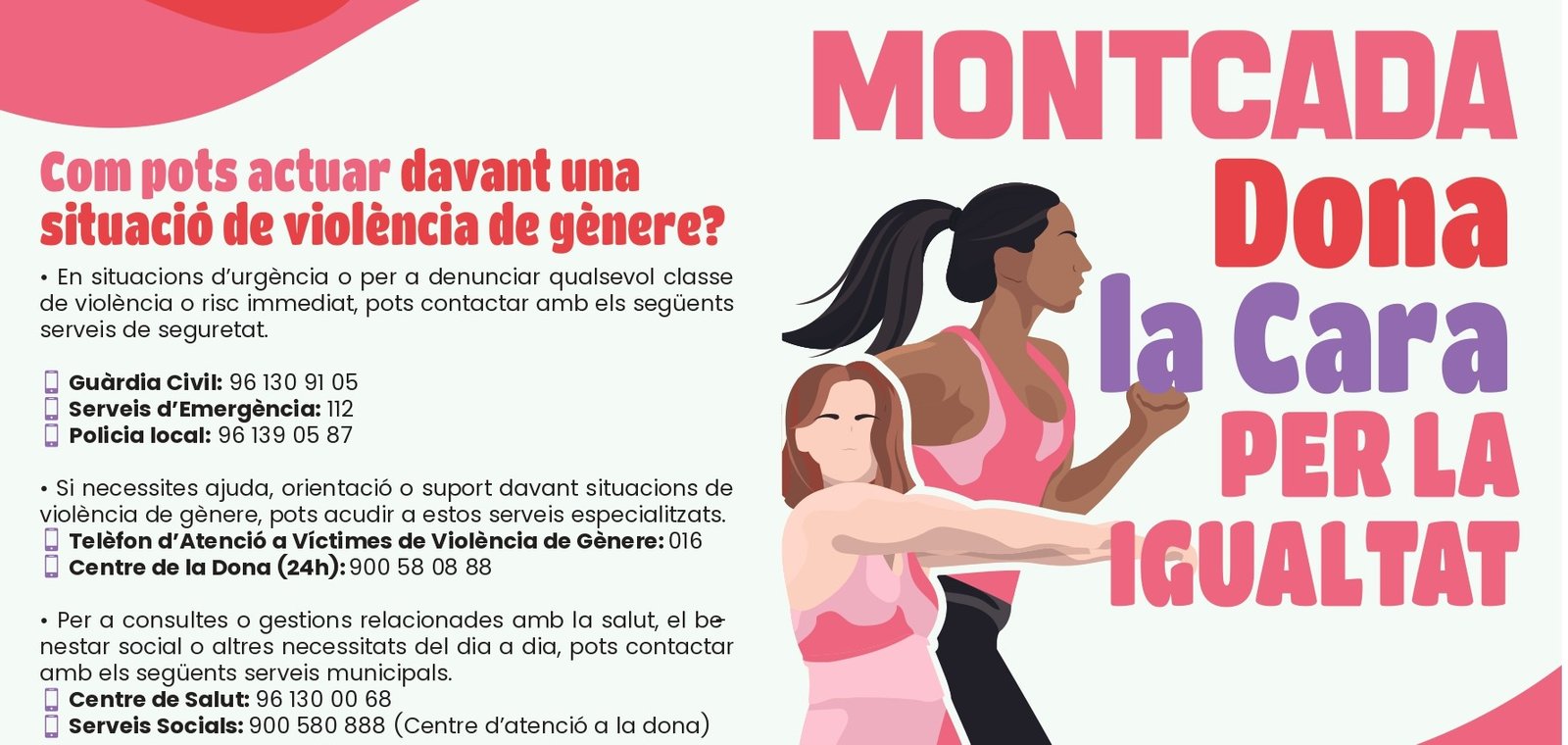 Amb motiu del Dia Internacional de l’eliminació de la violència de gènere del 25 de novembre, desde la regidoria d’Igualtat que encapçala Feli Bondia s’ha presentat l’acció denominada ‘Montcada dona la cara contra la violència de gènere‘. Es tracta d’una acció que es presenta com una potent eina de sensibilització, visibilització i conscienciació al voltant de les situacions de violència cap a les dones que continuen ocorrent.