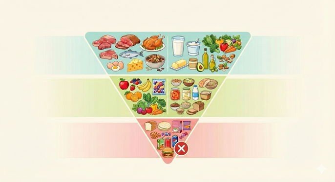 En el centro de estos cambios está una pirámide invertida y rediseñada que da prioridad a las proteínas, los lácteos, las verduras y las grasas saludables. Las guías aumentan de forma significativa la recomendación de proteína, se alejan del consejo de elegir lácteos bajos en grasa y establecen límites más estrictos para los azúcares añadidos y los alimentos ultraprocesados.