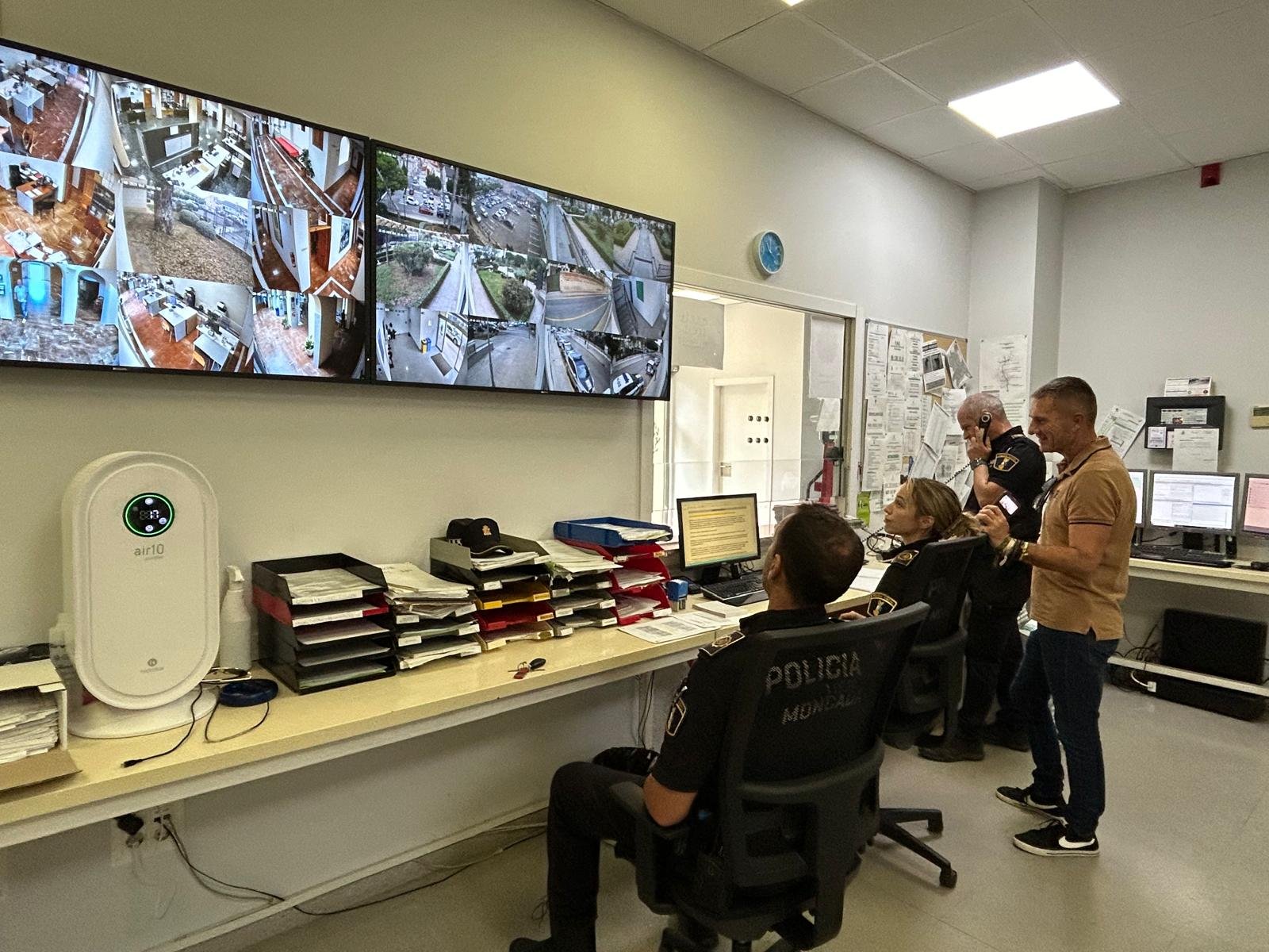 Pantallas de vigilancia de calles en el centro de control de la Policía Local de Moncada | MD