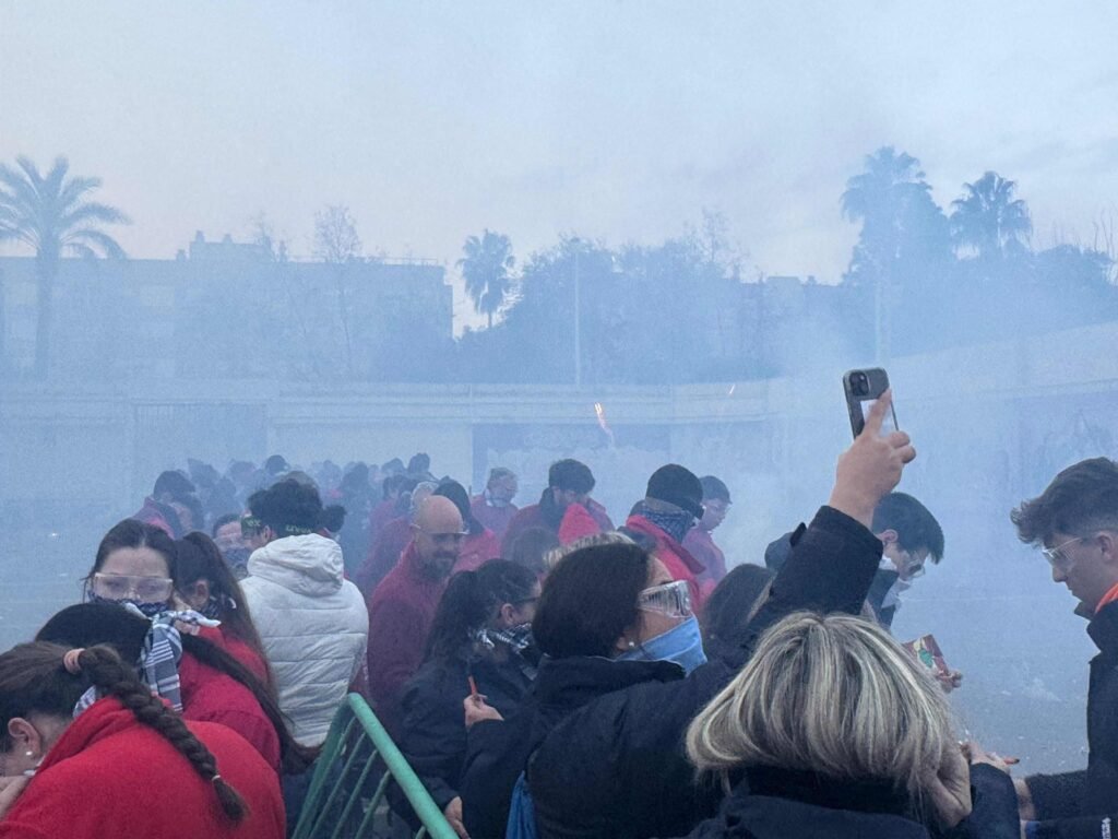 Decenas de miembros de todas las comisiones de Moncada, las falleras mayores Maria Colmenar y Paula Bailach y su corte de honor acompañadas por la práctica totalidad de los miembros de la JLF con su presidente Vicente Rodríguez a la cabeza y el concejal de Fallas, Martín Pérez han participado en el estruendoso inicio de las fallas 2026.