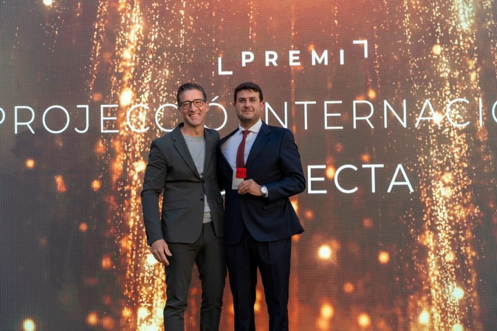 Joan Serra Antoni recibe el premio de Carlos Bernabé, CEO de Indespan | VICTOR DOMÍNGUEZ